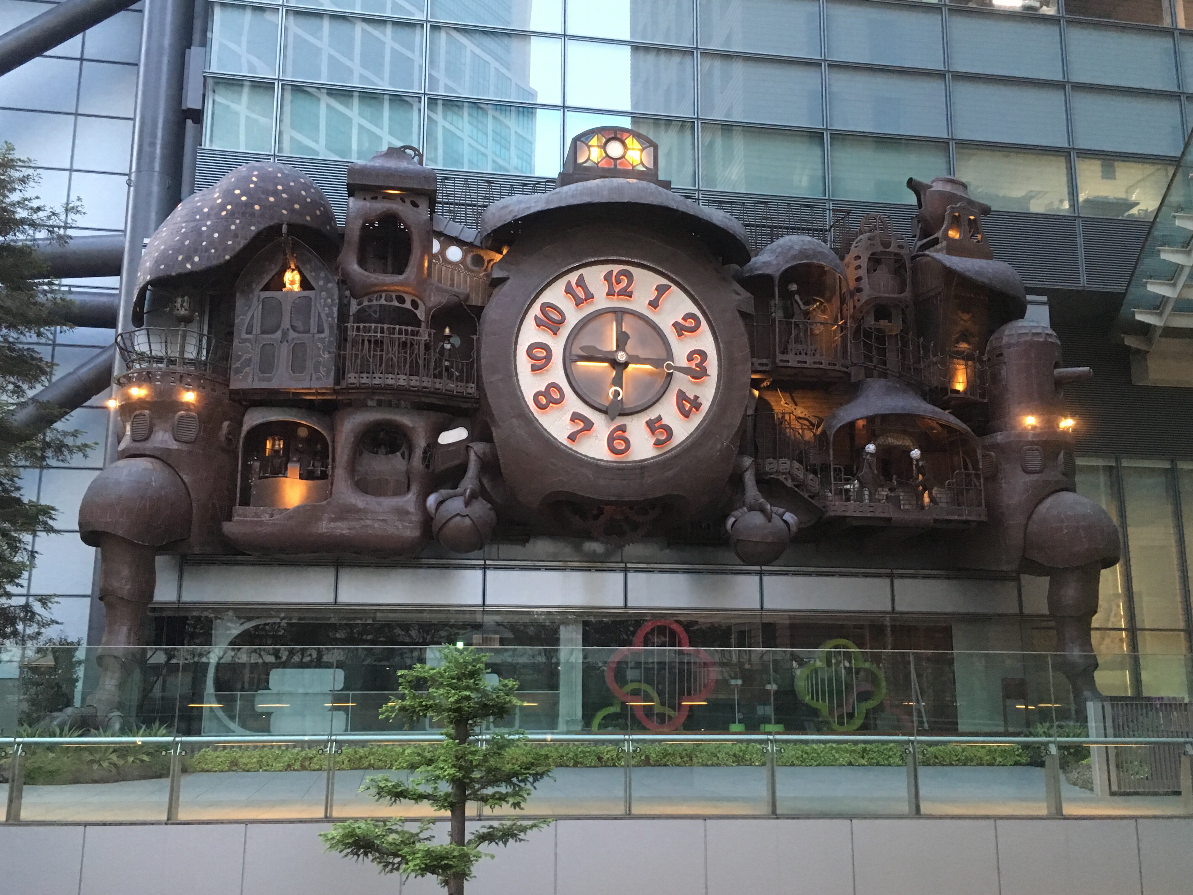 Un petit tour de métro plus tard, et nous arrivons à Shinbashi où nous trouvons la première surprise : l’horloge Miyazaki.