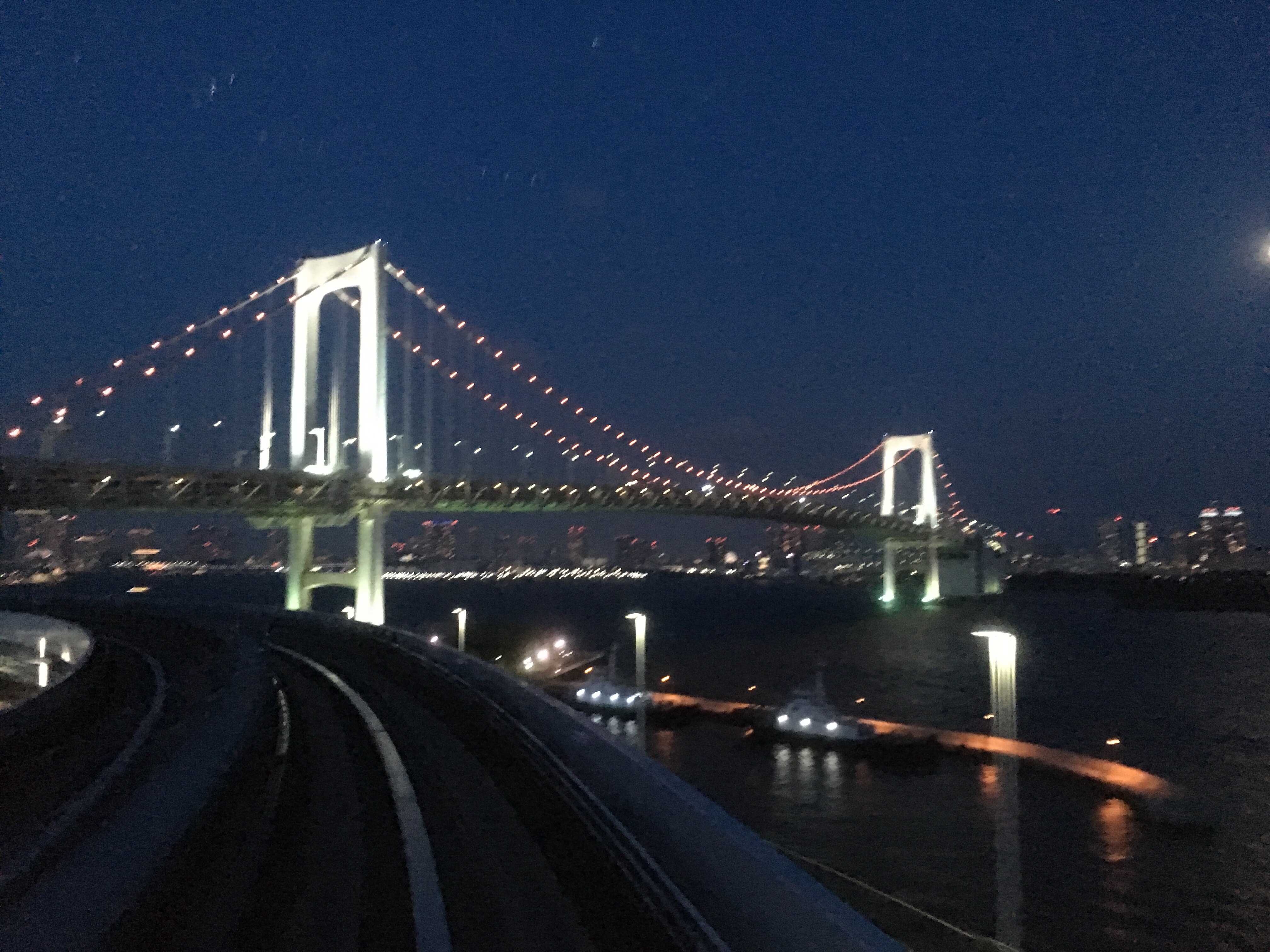 Nous prenons maintenant le monorail jusqu’à Daiba. Le trajet est tout simplement magique.