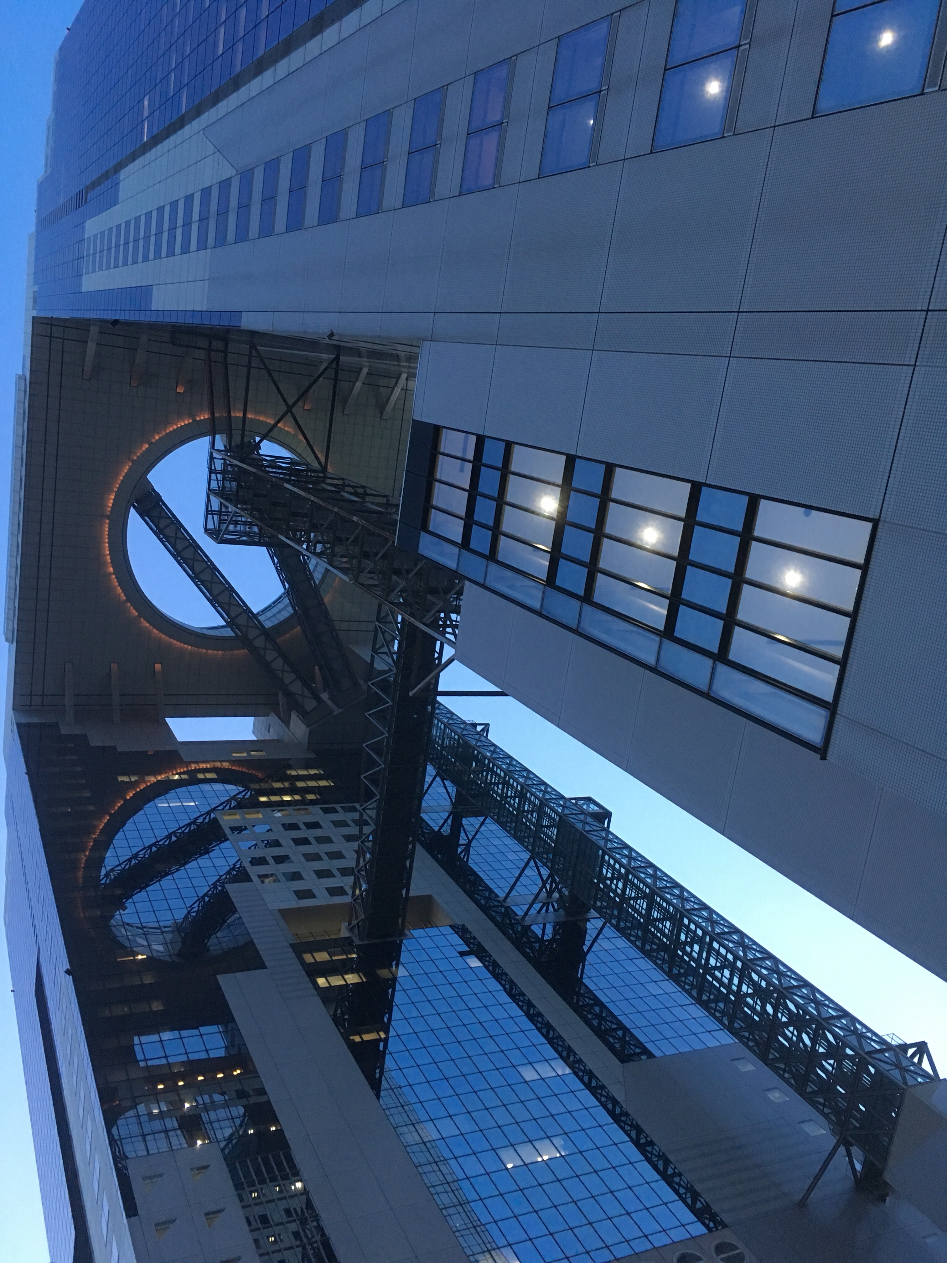 Nous faisons un tour dans les magasins de la gare, puis le groupe se scinde en 2. Lili et sa maman rentrent, pendant que nous allons à la tour “Umeda Sky Building”.