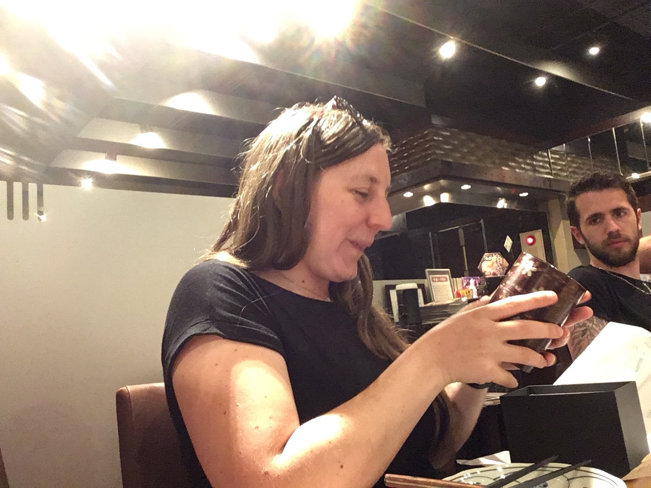 Et l’après-midi se poursuit jusqu’au resto du soir, où nos compagnons de voyage offrent à Mim’ en cadeau de remerciement pour ce formidable voyage qu’elle a organisé.