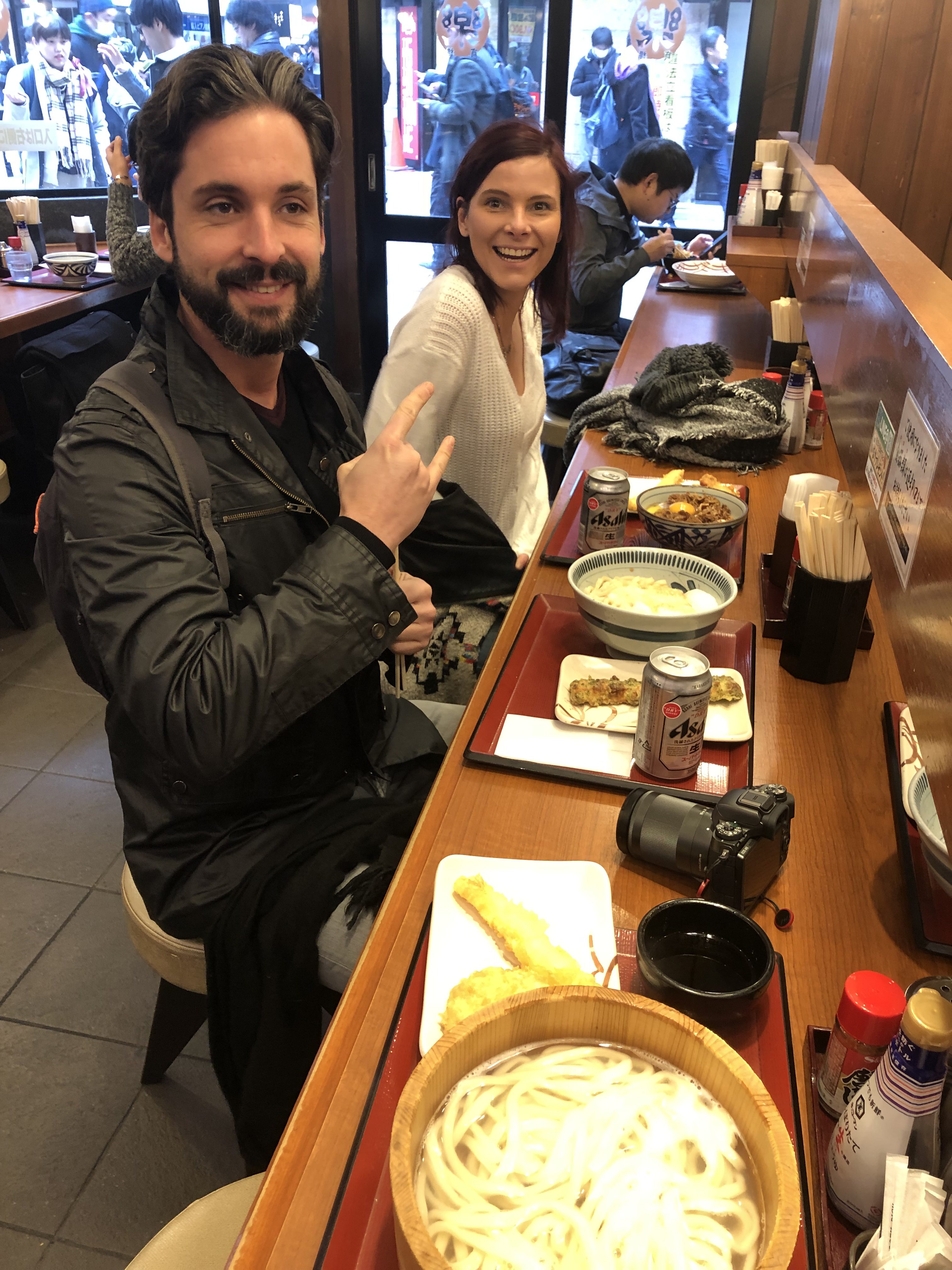 Nous repartons à la gare de Shinjuku pour changer notre JR, après avoir déjeuné des Udon.
