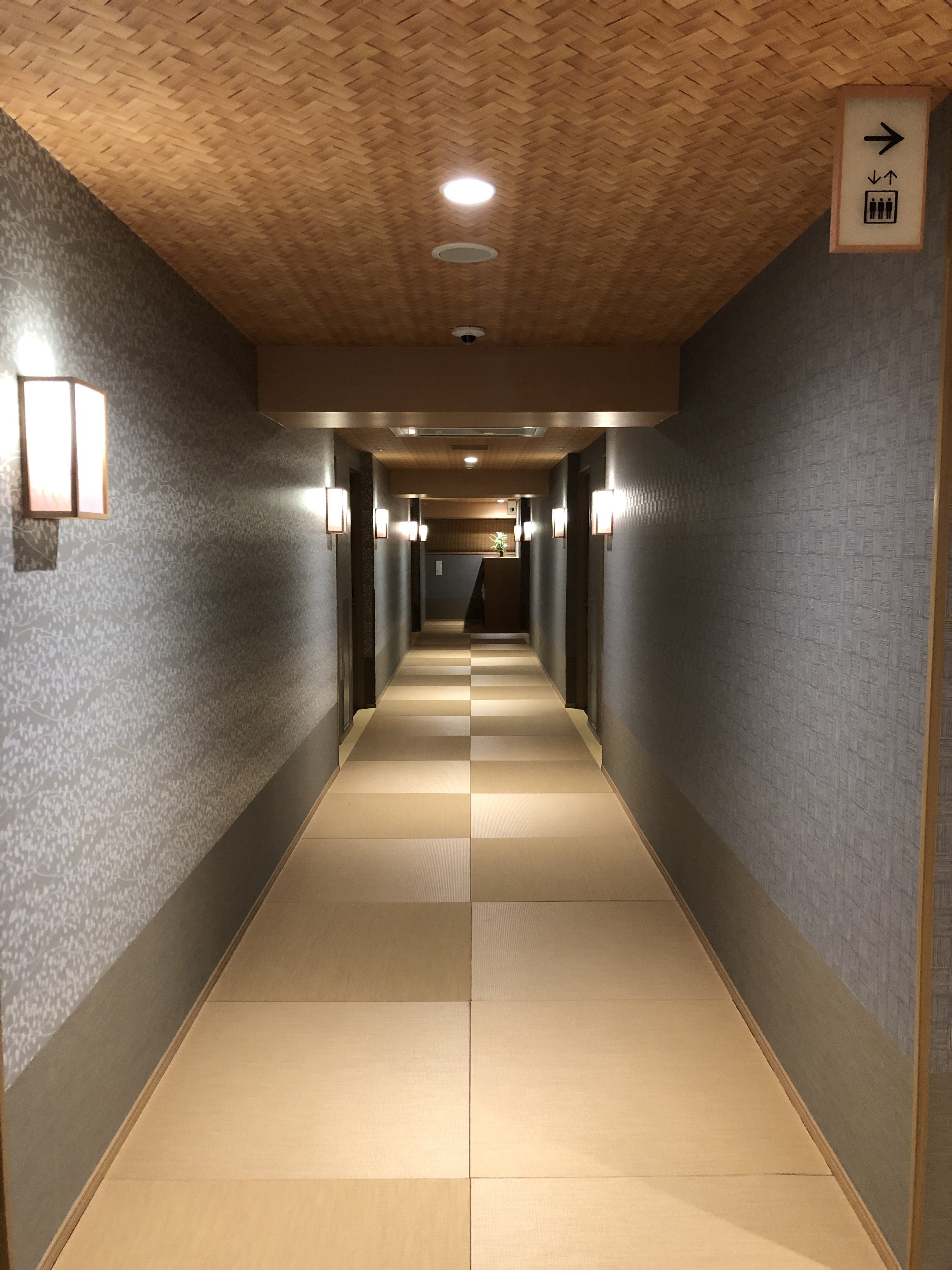 Arrivés à l’hôtel, nous découvrons un établissement rempli de charme au sol en tatami partout!!