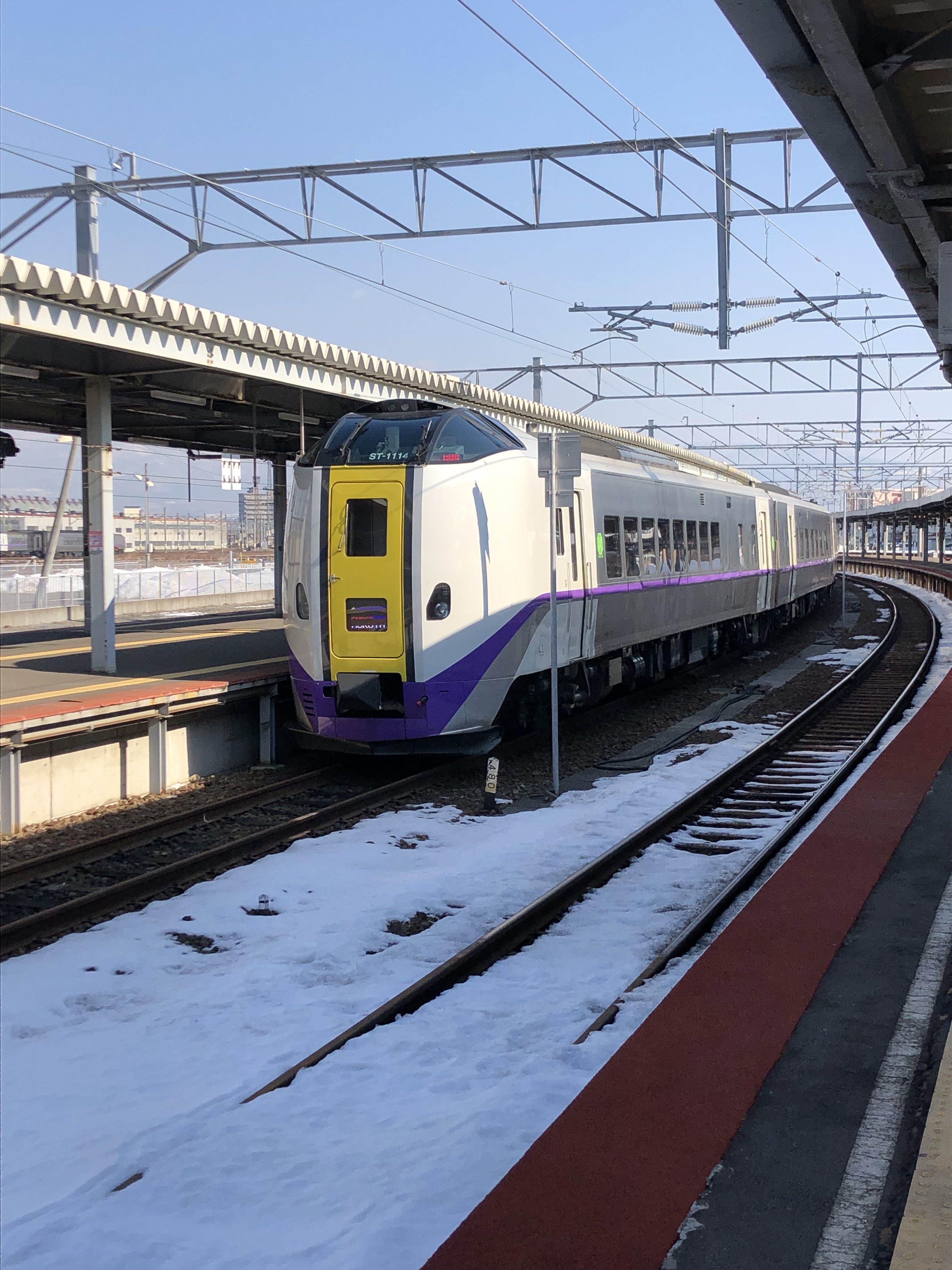 Ce matin, douche, bouclage de sacs, et direction la gare. Nous y prenons notre café petit-déjeuner, puis prenons un train local jusqu’à Shin-Hakodate Okuto (de cuisine)