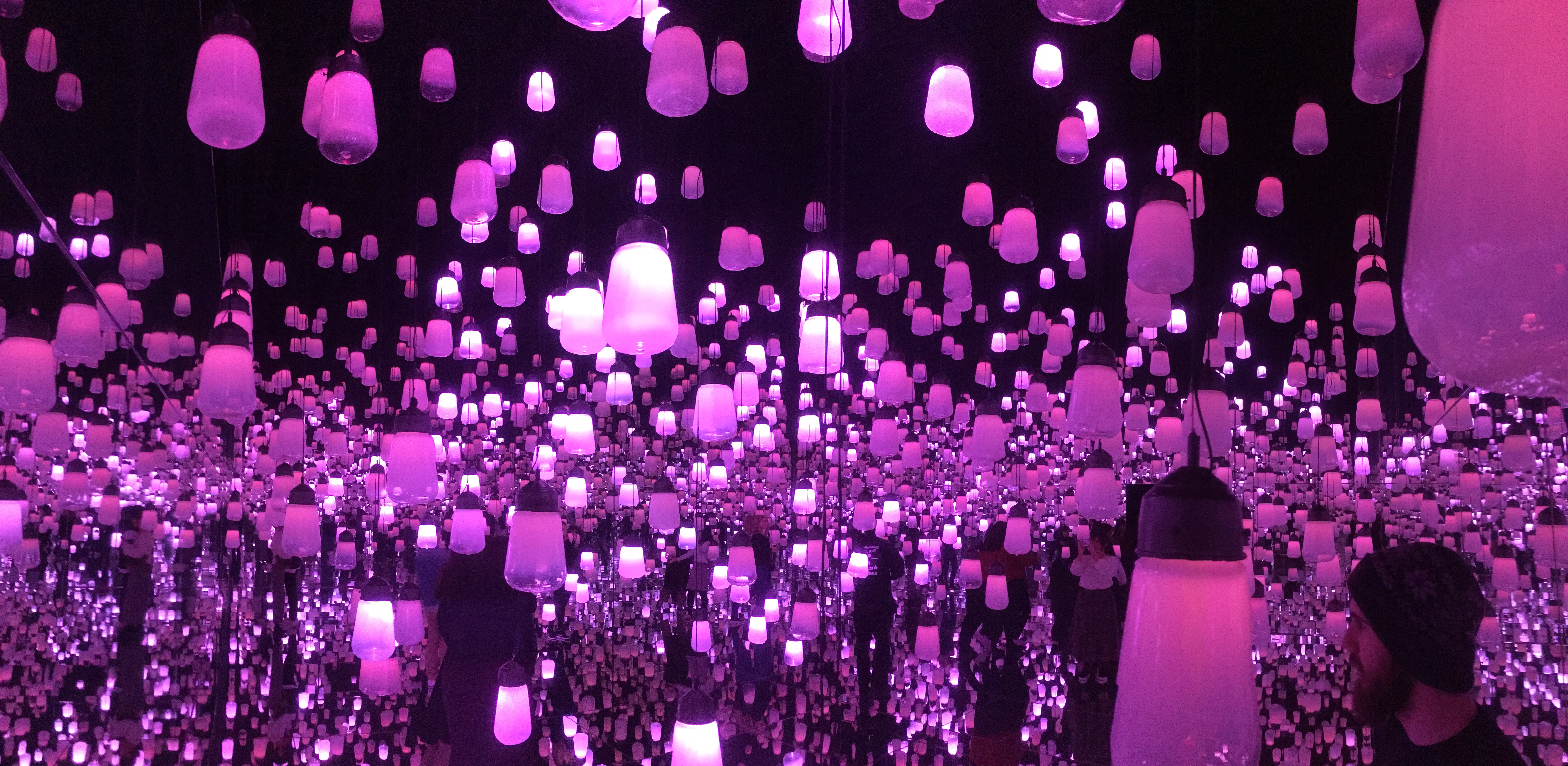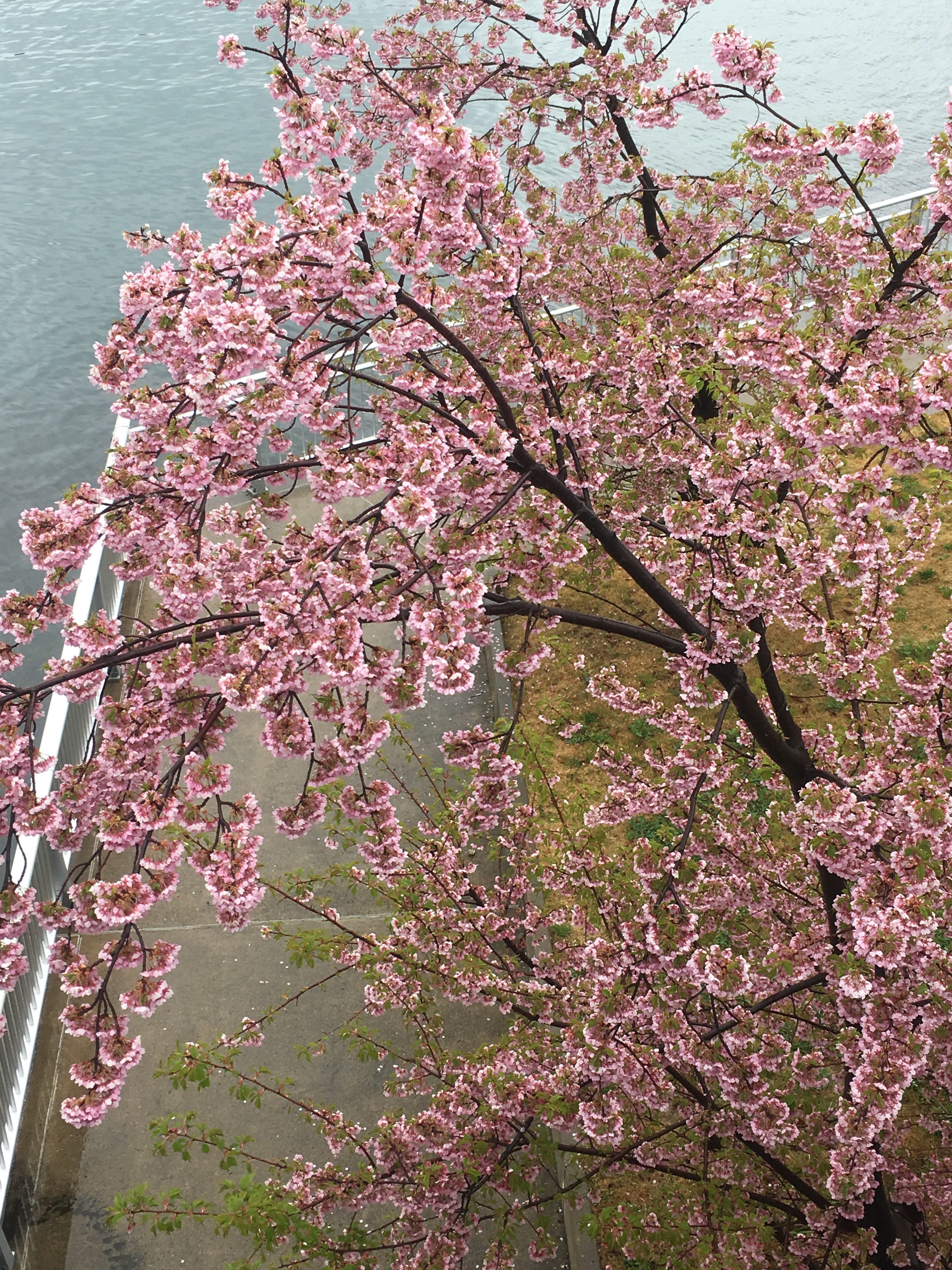 Sur le chemin pour aller à TeamLab, nous rencontrons des cerisiers en fleurs. C’est un peu tôt, y’a plus de saison mon bon Môssieu.