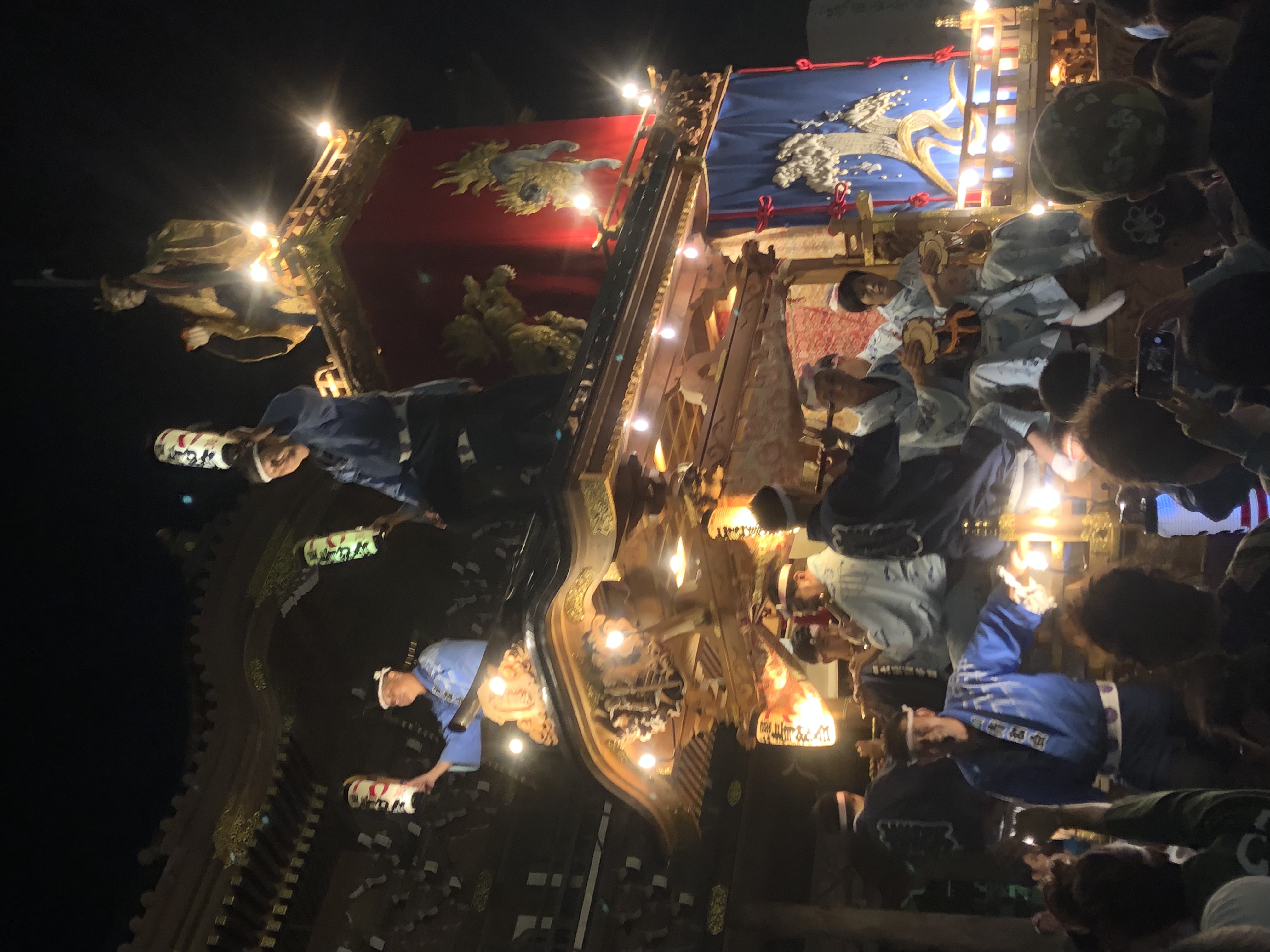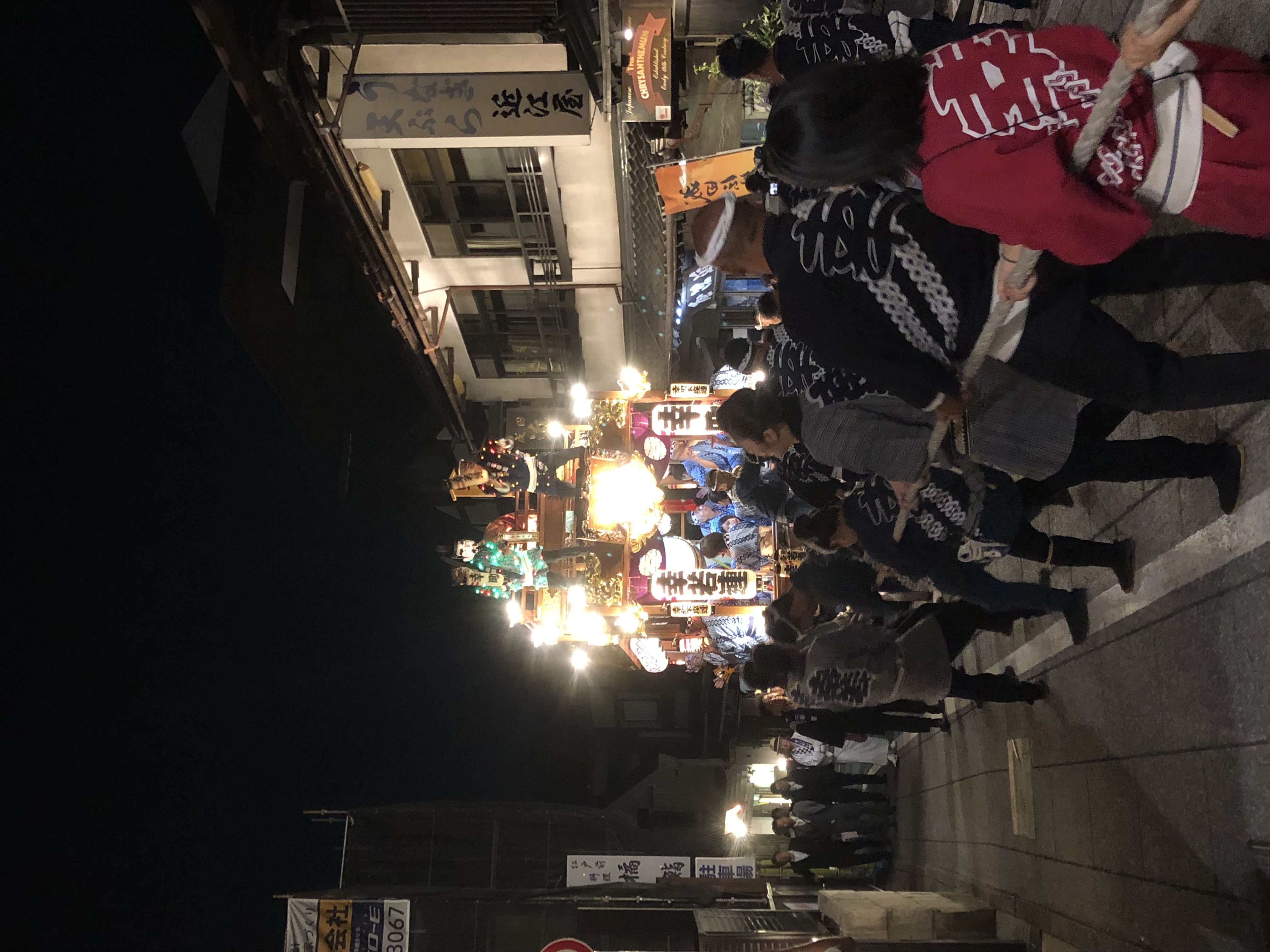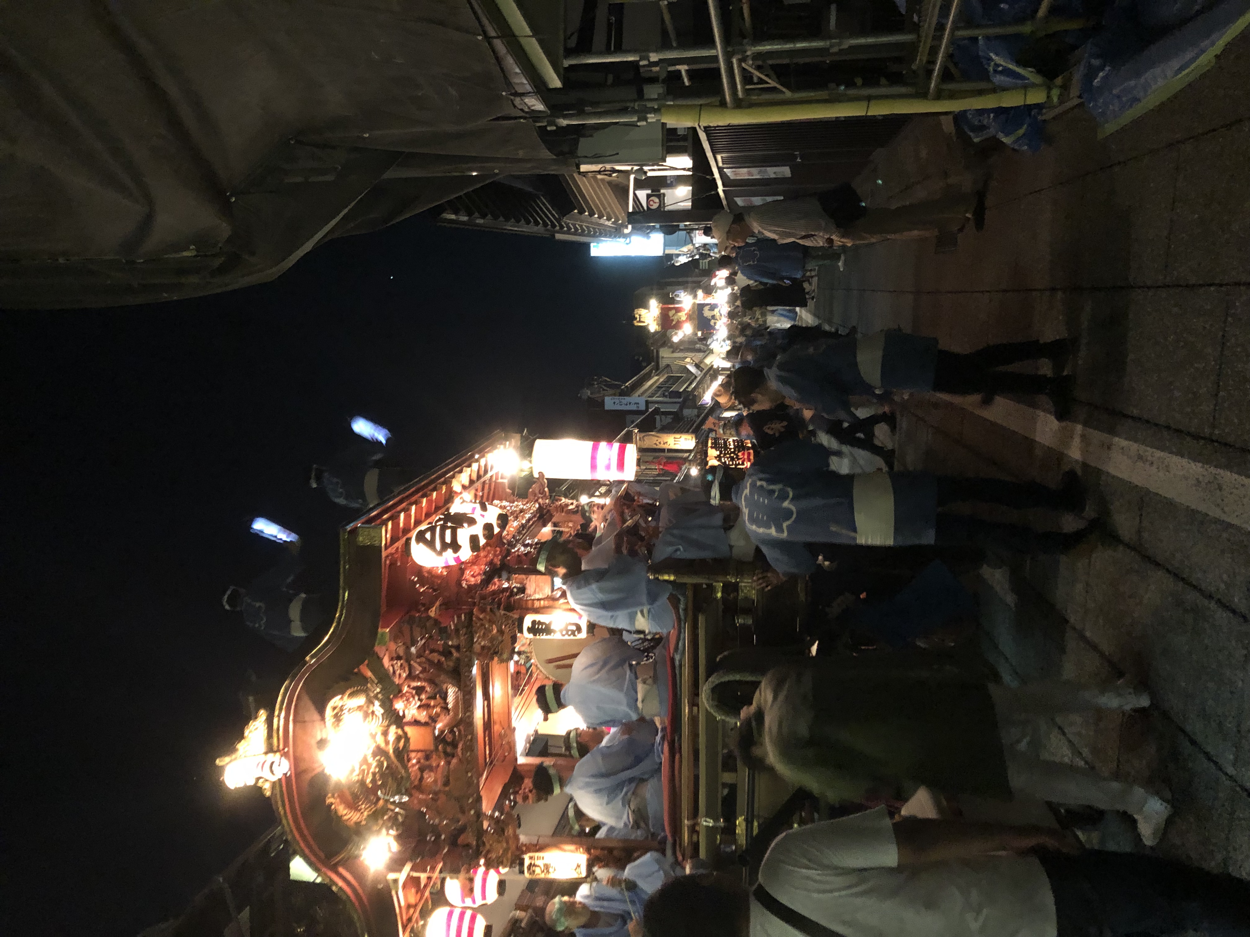 De looooongues cordes tirées à la force d’humains (enfants, femmes, hommes) font avancer les chars sur lesquels il y a des musiciens (taiko, pipeau, shamisen), et les gars avec les sifflets et les mégaphones pour encourager et rythmer les cortèges.