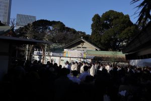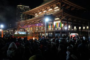 Nous allons jusqu’au temple à côté, Zojoji Shrine. Il y a énormément de monde, et à minuit, il y a un mini “whaou”, un truc très sobre. Ce n’est pas la liesse populaire comme on peut avoir en occident. Nous sommes dans un lieu sacré !