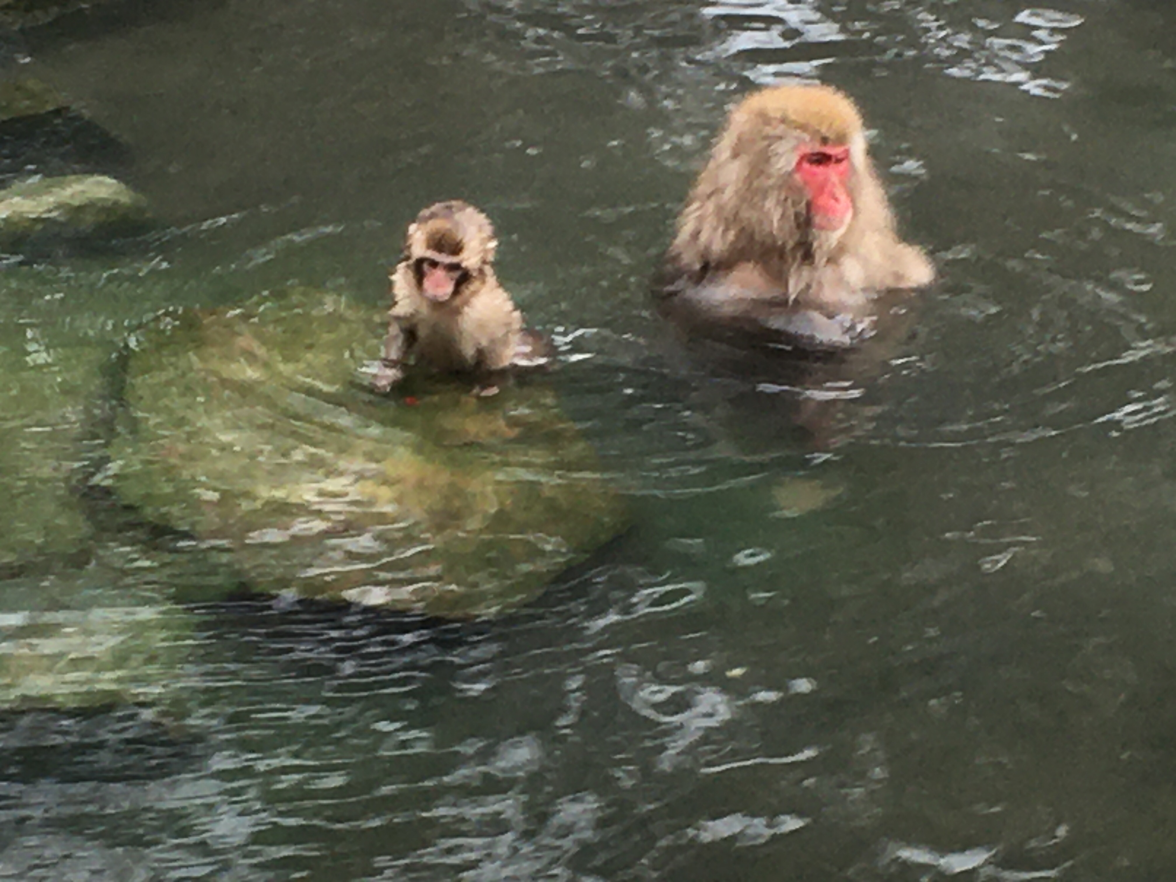 Sur la route, entre Shigakogen et Yamanouchi, il y a un parc avec des singes (les snow monkeys). Nous nous attendions à un zoo, ou équivalent… mais non! Nous sommes en liberté sur le territoire des singes, nous sommes chez eux! C’est simplement magique!