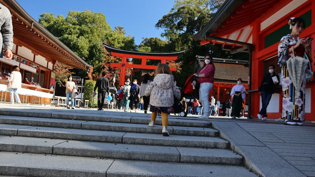 Ensuite, en allant prendre le train, nous tombons sur une boutique Lupicia (tu sais, c’est LA chaîne de boutique de thé que Mim’ adore, que nous n’avions pas trouvé à Tokyo). Tout à coup, ils ont beaucoup moins de stock. Puis nous prenons le train jusqu’au Fushimi Inari. Le chemin complet bordé de torii fait 4 km. C’est trop pour Cha, mais on peut faire une photo ou deux.