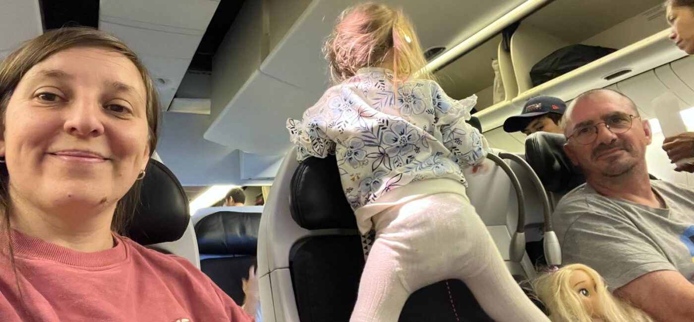 🇨🇭17:10 – 🇯🇵 J+1 00:10: Nous décollons! Cha a son siège, mais on est tellement mieux dans les bras de Maman!