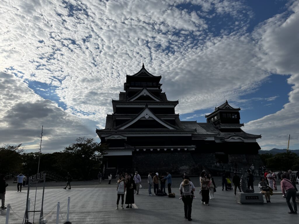 A son réveil, elle est motivée à aller voir le château de Kumamoto. Alors, après la pause goûter, nous y allons. C’est vraiment interessant, autant le bâtiment lui-même que ce qui a été fait après le tremblement de terre. A la fin de la visite, il est temps de rentrer. La fièvre remonte.