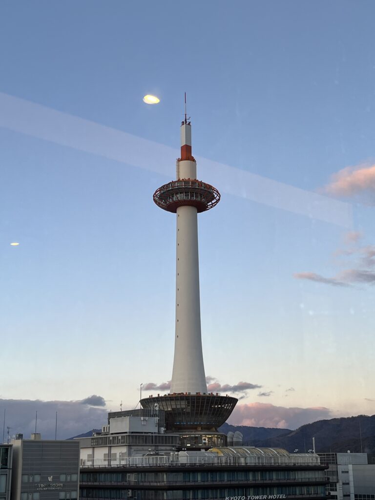 Nous prenons le goûter dans un café à la gare de Kyoto, avec vue.