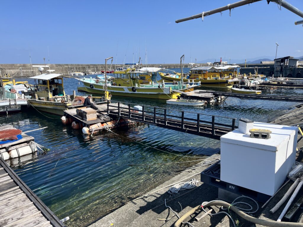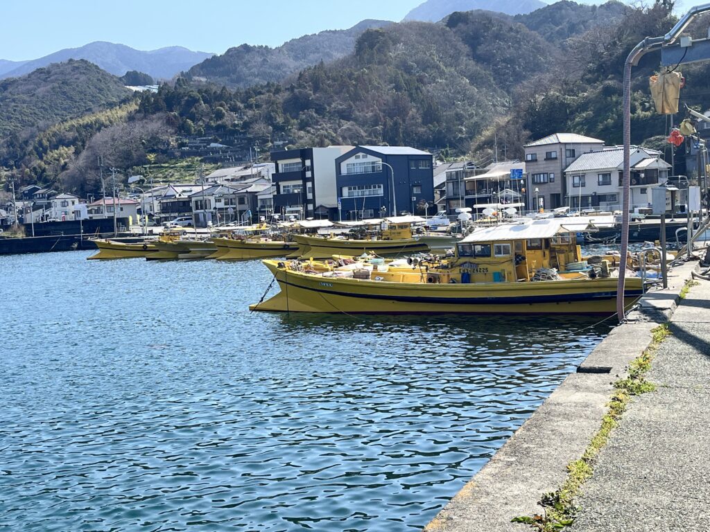 Ce matin, nous allons au parc pour enfants. Nous passons par le port de pêche.