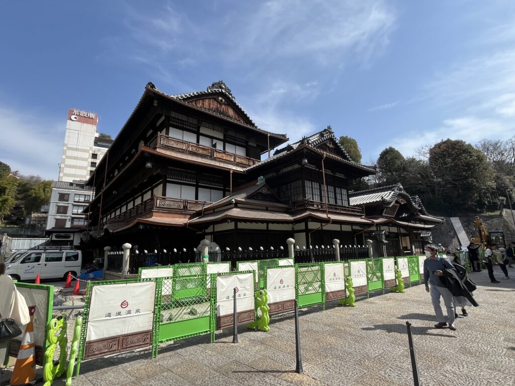 Après déjeuner, Cha s’endort dans sa poussette. Nous allons donc jusqu’au Dogo Onsen à pied. C’est un des plus anciens onsen du Japon.