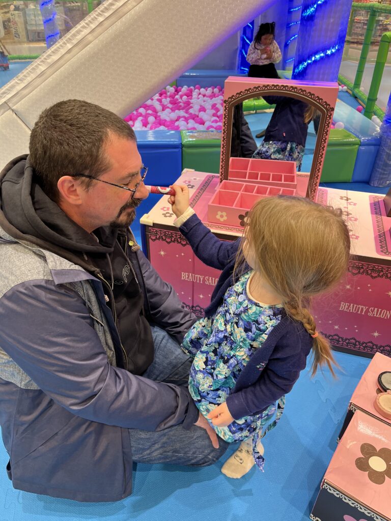 Mim’ a trouvé! Et hop, direction le parc. Certes, c’est dans un centre commercial, mais il y a une fouletitude d’activités pour Cha qui s’amuse bien.