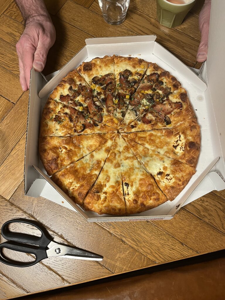 Une fois rentrés, la flemme de faire à manger. Aussi, ce sera pizza bi-goût!