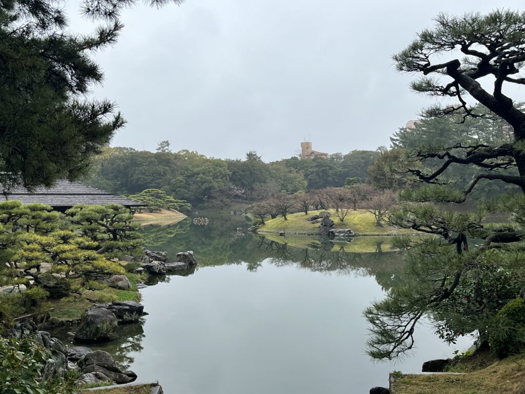 Ce matin, c’est direction Otsu. Mais nous faisons une pause dans le magnifique jardin de Ritsurin-Kōen.